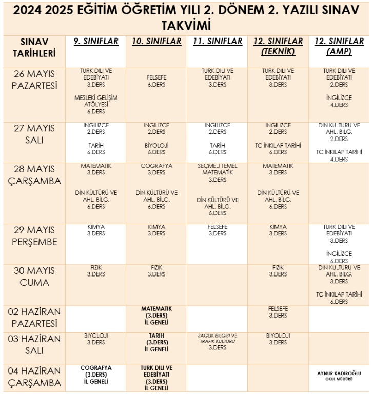 2.Dönem Ortak Sınav Tarihleri